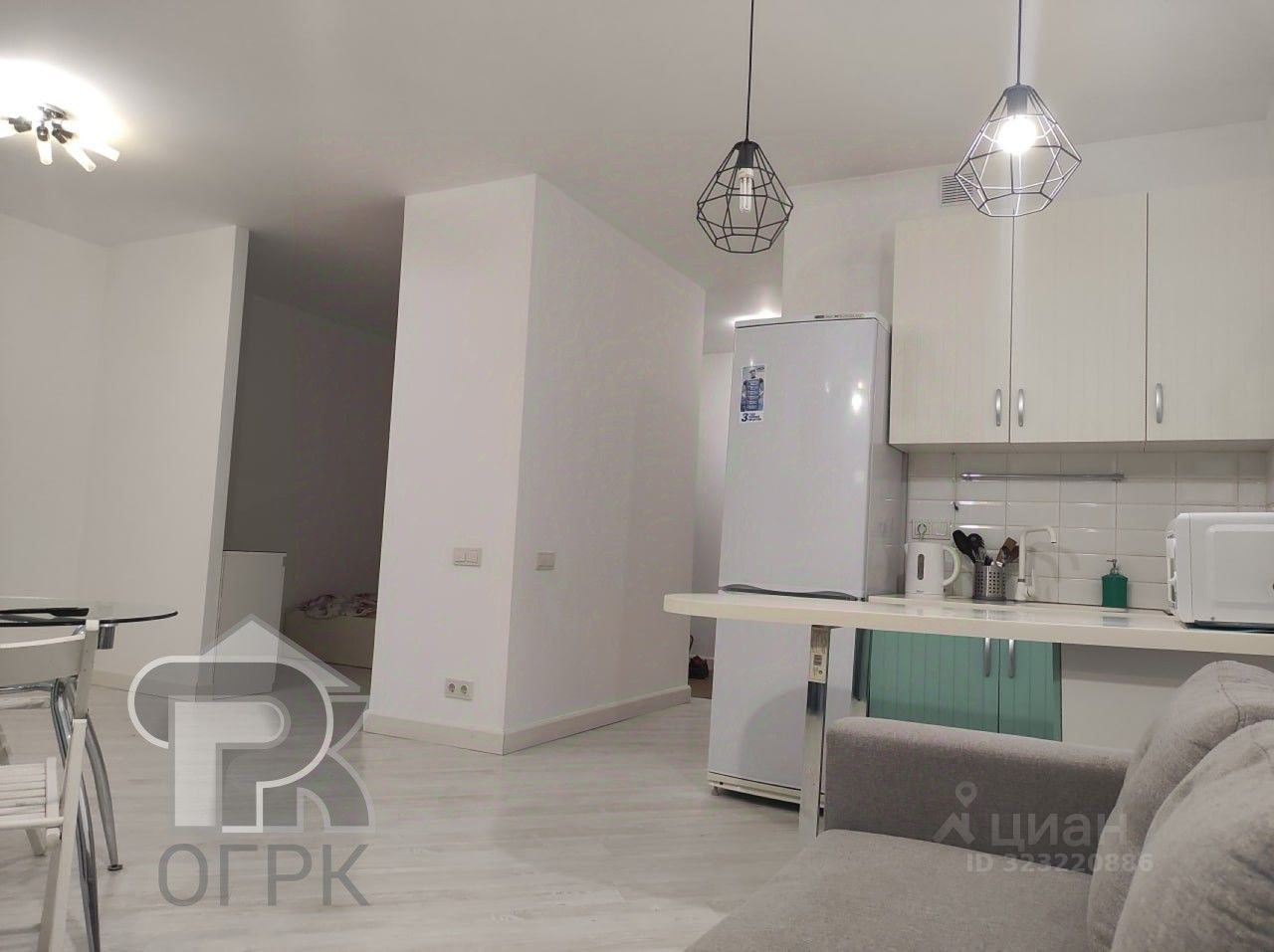 Кухня-гостиная и небольшая спальня. Кухонная зона оснащена необходимой бытовой техникой: холодильником, варочной панелью, микроволновой печью. Все остается в подарок покупателям.