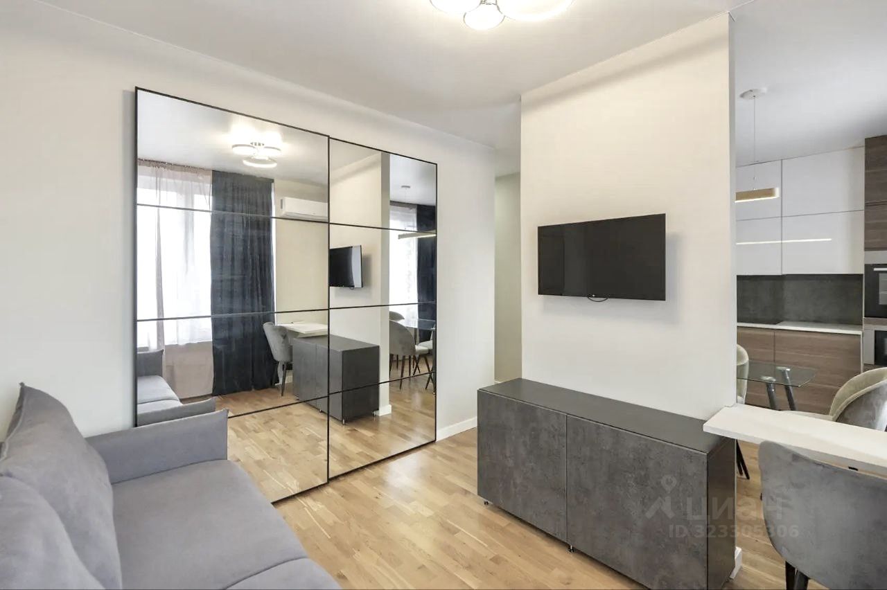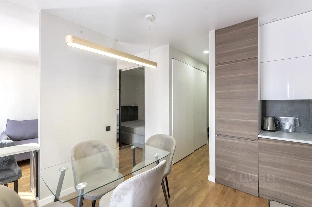 УНИКАЛЬНАЯ дизайнерская ПЛАНИРОВКА с выделением трёх зон: кухня-столовая, гостиная, спальня.