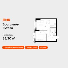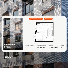 Продаётся 1-комн. квартира площадью 38,3 кв.м на 2 этаже 15 этажного дома (Корпус 48, Секция 3) проекта ПИК Восточное Бутово. Светлый просторный подъезд на уровне земли, функциональная планировка, большие окна, предчистовая отделка.
