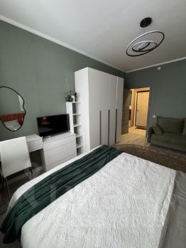 Продается чистая уютная однокомнатная квартира в современном кирпичном доме 2017 года постройки. Общая площадь составляет 34 кв. м, жилая площадь — 14 кв. м, кухня — 10 кв. м. Квартира находится на 7-м этаже 17-этажного дома. Высота потолков — 2.7 метра, окна выходят на улицу, есть лоджия.