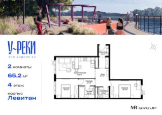 Продаётся 2-комнатная квартира общей площадью 65.20 м² с чистовой отделкой в ЖК "У реки. Эко Видное 2.0" на 4-м этаже 17 этажного корпуса Левитан.