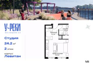 Продаётся студия общей площадью 24.20 м² с предчистовой отделкой в ЖК "У реки. Эко Видное 2.0" на 2-м этаже 17 этажного корпуса Левитан.