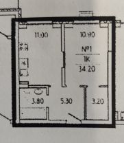 Продам 1-к квартиру с отделкой на 2-м этаже в ЖК Видный берег 2. Площадь 34,2 м2, в том числе: гардеробной-3.2 м2, спальни-10.9 м2, коридора-5.3 м2, кухни-11.0 м2, санузла-3.8 м2.