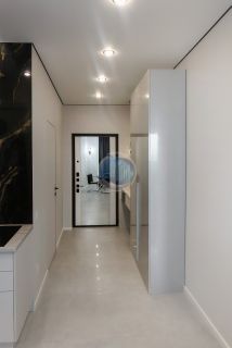 Дизайнерский ремонт с использованием премиальных материалов: стены и полы идеально выровнены, всё выполнено по современным стандартам качества.