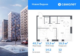 Строим кварталы для жизни с заботой о будущем. Предлагается 1-комнатная квартира комфорт-класса 45,72 кв.м в корпусе 14.2 на 12 этаже, в ЖК "Новое Видное"