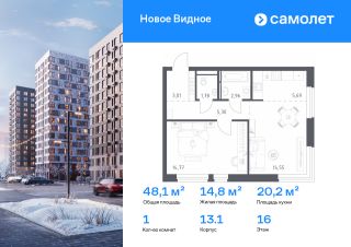 Строим кварталы для жизни с заботой о будущем. Предлагается 1-комнатная квартира комфорт-класса 47,5 кв.м в корпусе 13.1 на 16 этаже, в ЖК "Новое Видное"