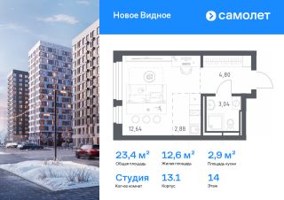 Строим кварталы для жизни с заботой о будущем. Предлагается квартира студия комфорт-класса 23,3 кв.м в корпусе 13.1 на 14 этаже, в ЖК "Новое Видное"