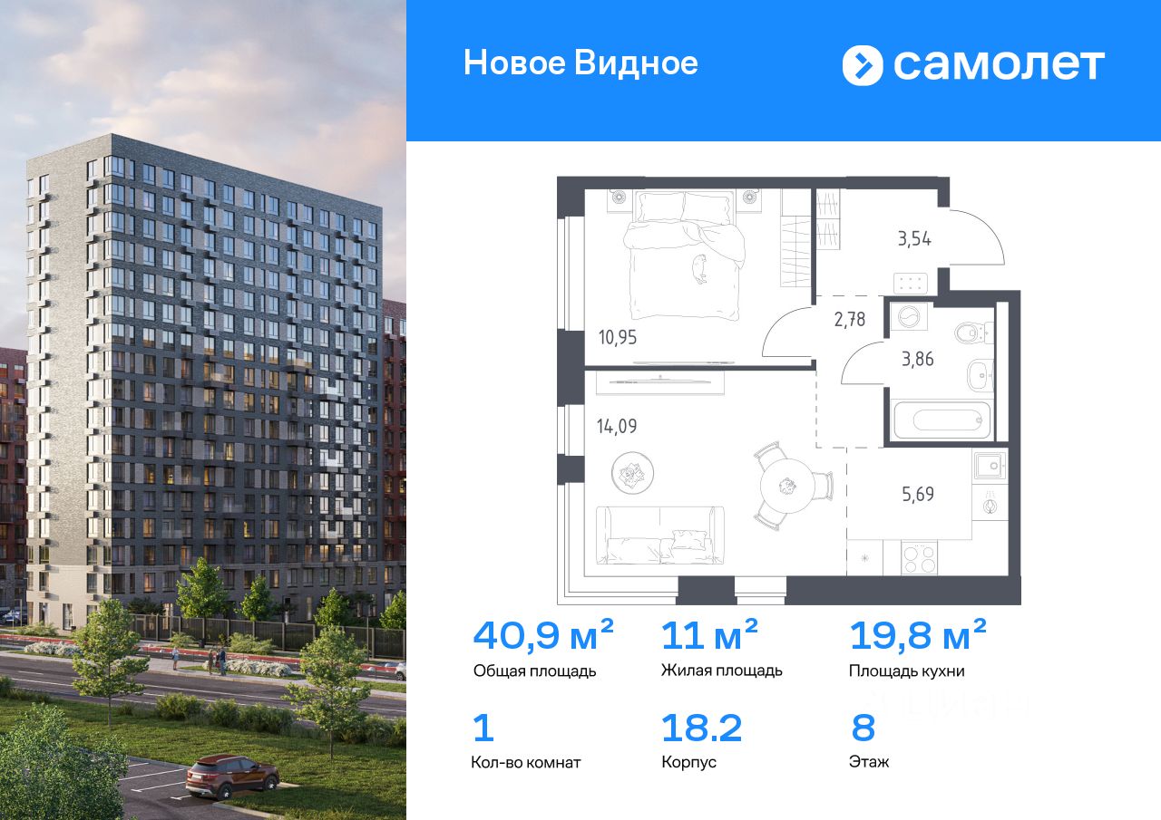 Строим кварталы для жизни с заботой о будущем. Предлагается 1-комнатная квартира комфорт-класса 40,91 кв.м в корпусе 18.2 на 8 этаже, в ЖК "Новое Видное"