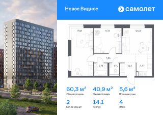 Строим кварталы для жизни с заботой о будущем. Предлагается 2-комнатная квартира комфорт-класса 60,29 кв.м в корпусе 14.1 на 4 этаже, в ЖК "Новое Видное"