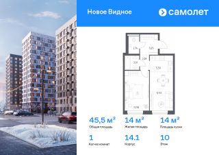 Строим кварталы для жизни с заботой о будущем. Предлагается 1-комнатная квартира комфорт-класса 45,48 кв.м в корпусе 14.1 на 10 этаже, в ЖК "Новое Видное"