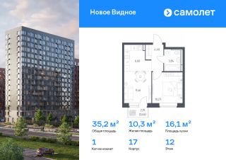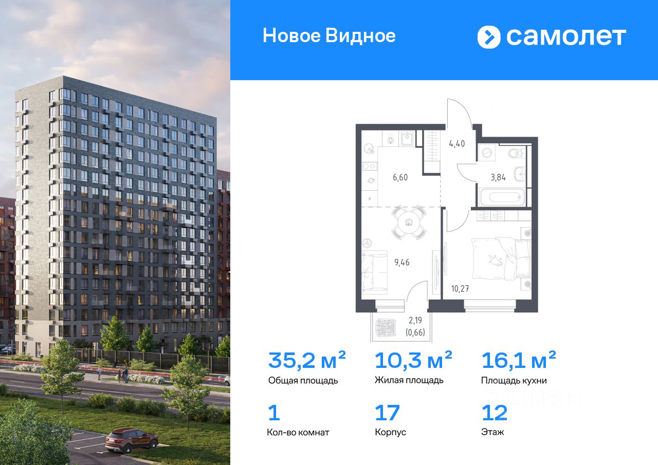 Строим кварталы для жизни с заботой о будущем. Предлагается 1-комнатная квартира комфорт-класса 35,23 кв.м в корпусе 17 на 12 этаже, в ЖК "Новое Видное"