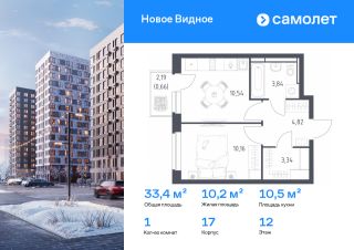Строим кварталы для жизни с заботой о будущем. Предлагается 1-комнатная квартира комфорт-класса 33,36 кв.м в корпусе 17 на 12 этаже, в ЖК "Новое Видное"