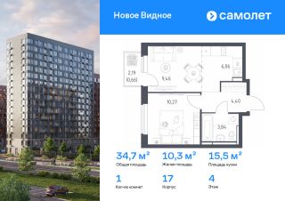 Строим кварталы для жизни с заботой о будущем. Предлагается 1-комнатная квартира комфорт-класса 34,69 кв.м в корпусе 17 на 4 этаже, в ЖК "Новое Видное"