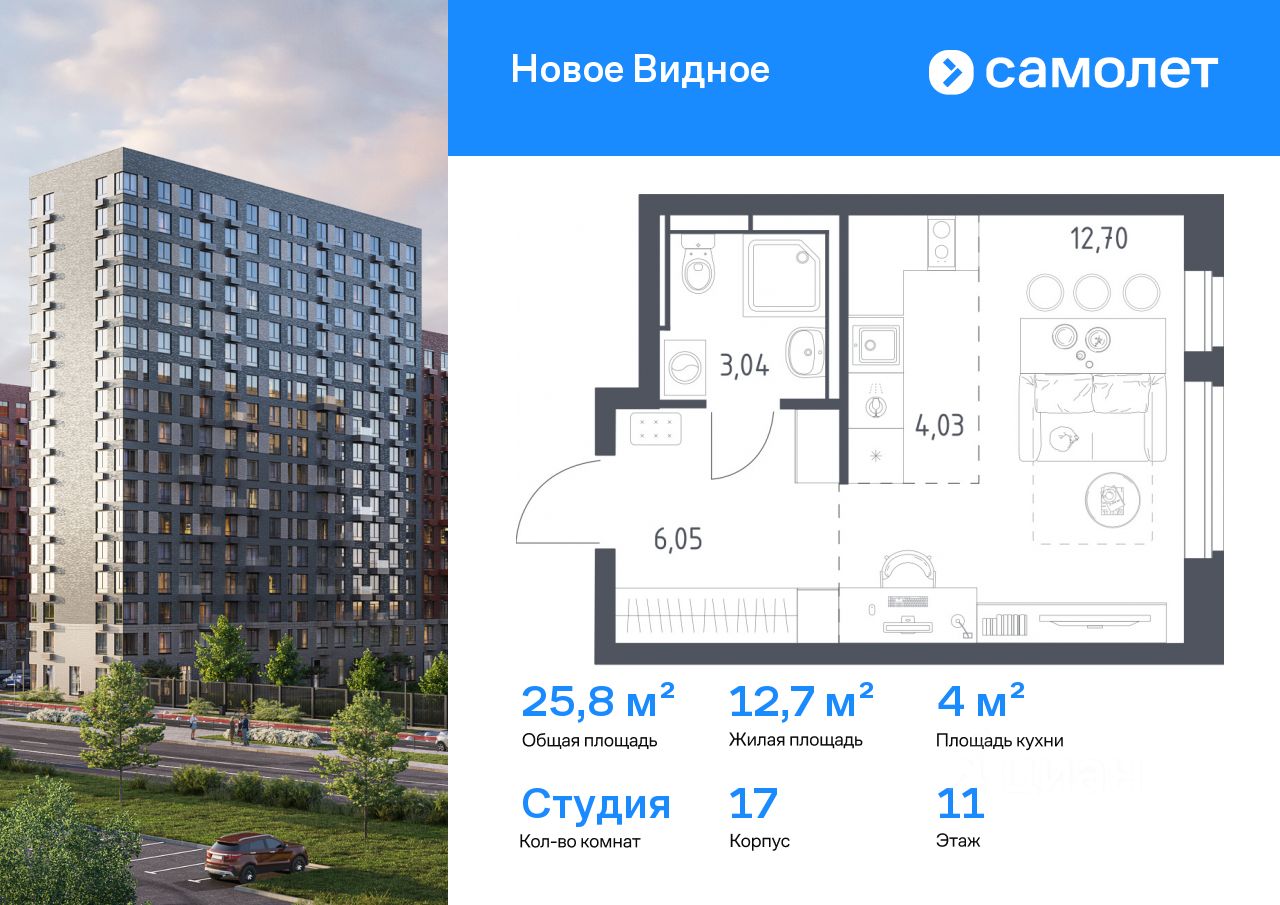 Строим кварталы для жизни с заботой о будущем. Предлагается квартира студия комфорт-класса 25,82 кв.м в корпусе 17 на 11 этаже, в ЖК "Новое Видное"