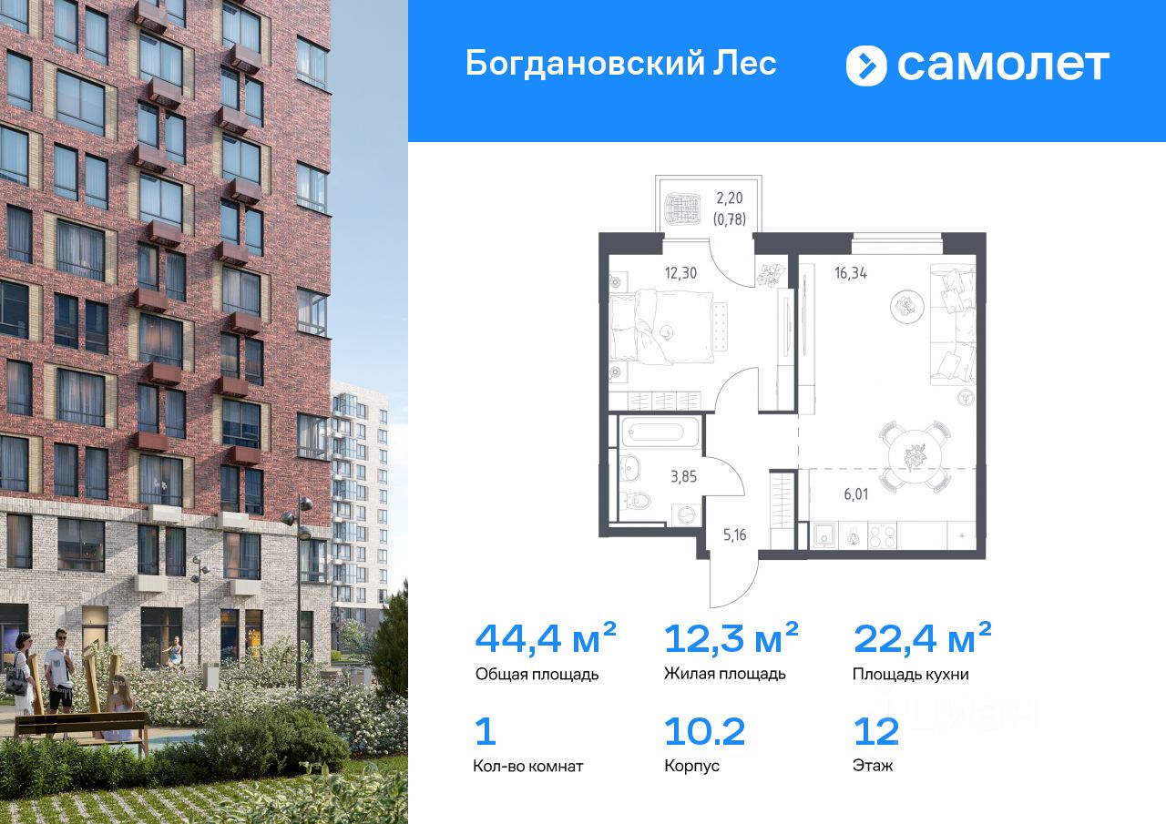 Строим кварталы для жизни с заботой о будущем. Предлагается 1-комнатная квартира комфорт-класса 44,44 кв.м в корпусе 10.2 на 12 этаже, в ЖК "Богдановский Лес"