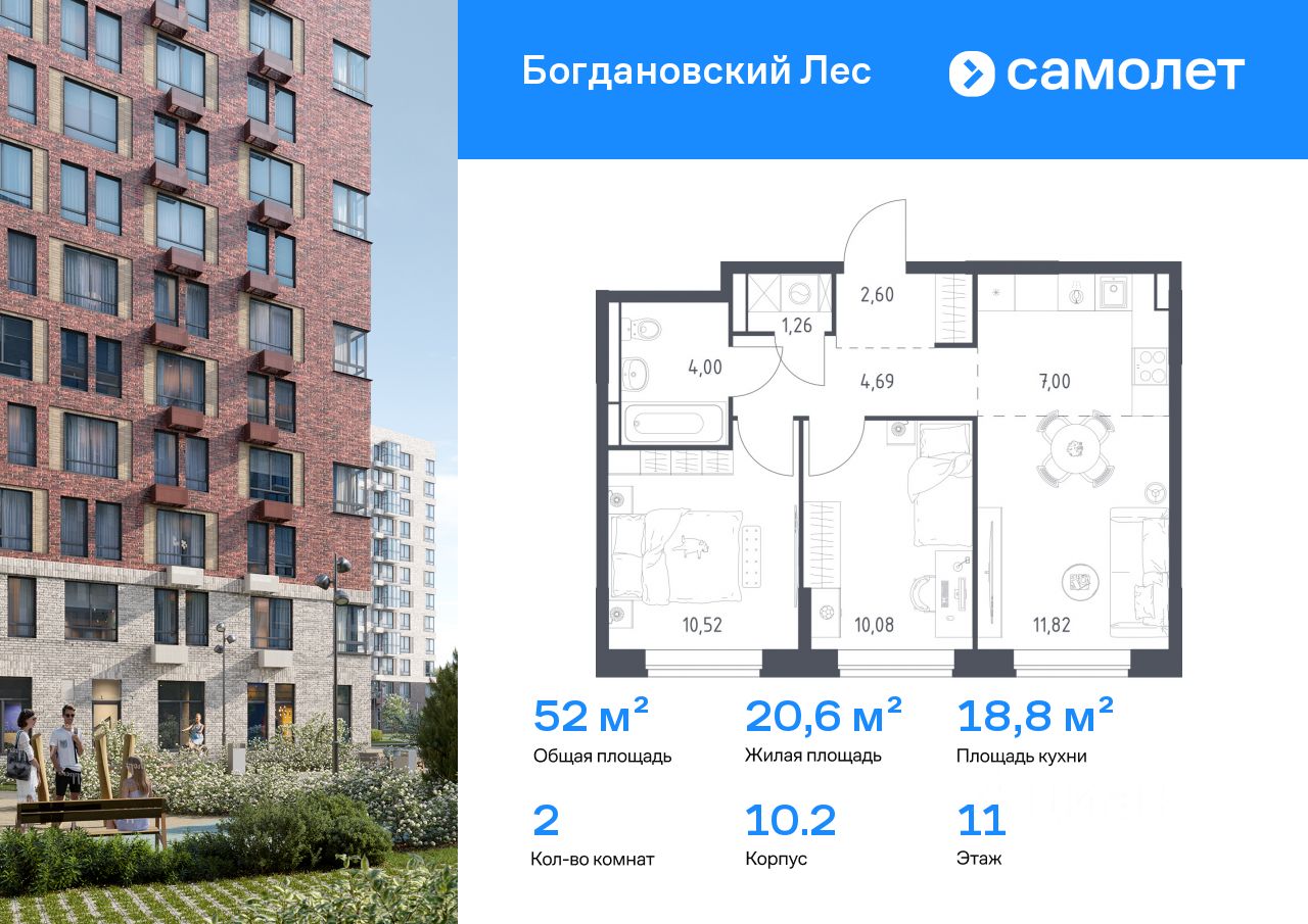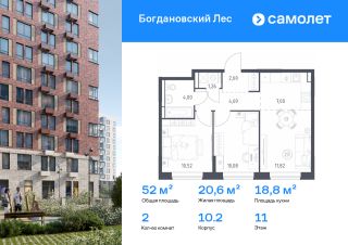 Строим кварталы для жизни с заботой о будущем. Предлагается 2-комнатная квартира комфорт-класса 51,97 кв.м в корпусе 10.2 на 11 этаже, в ЖК "Богдановский Лес"