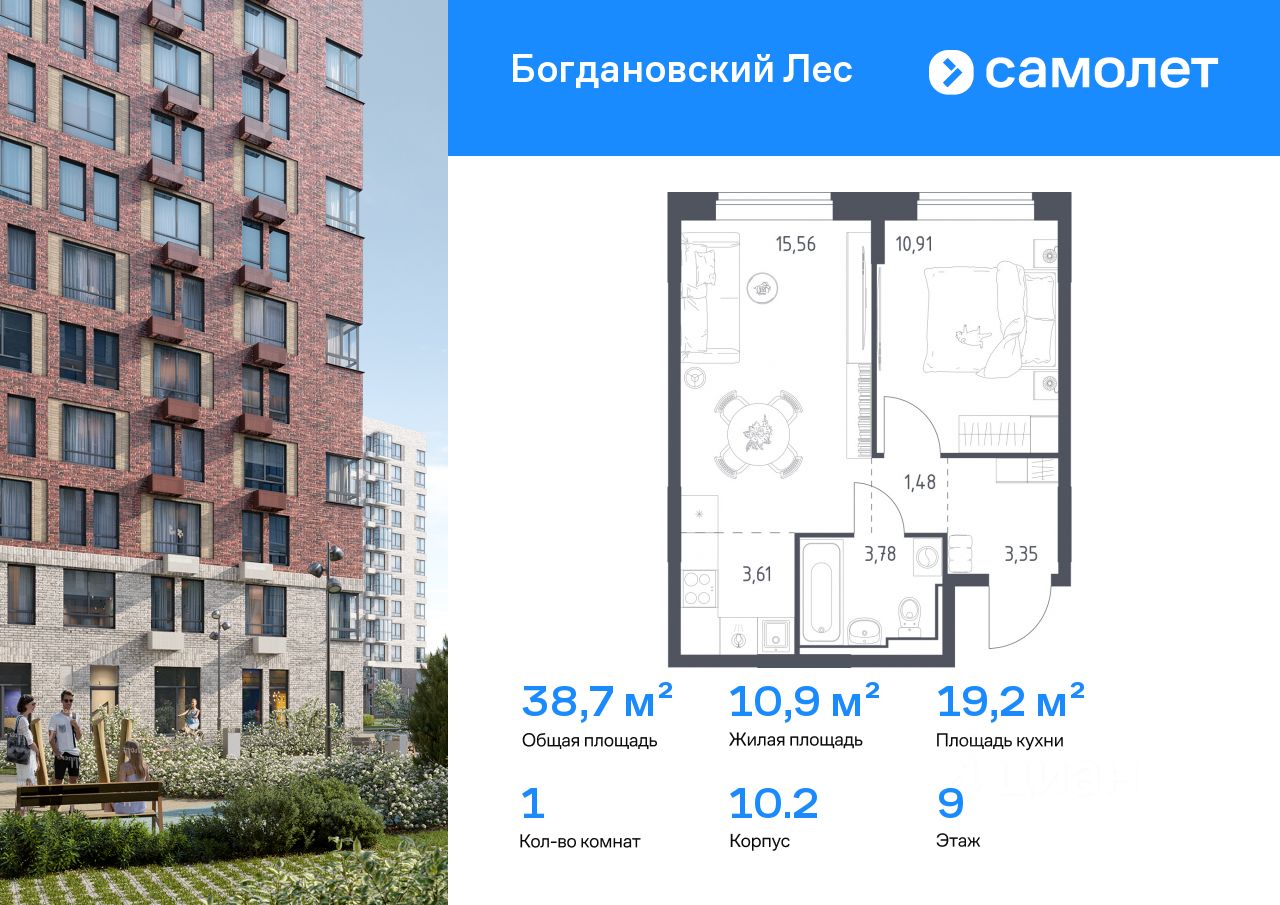 Строим кварталы для жизни с заботой о будущем. Предлагается 1-комнатная квартира комфорт-класса 38,69 кв.м в корпусе 10.2 на 9 этаже, в ЖК "Богдановский Лес"