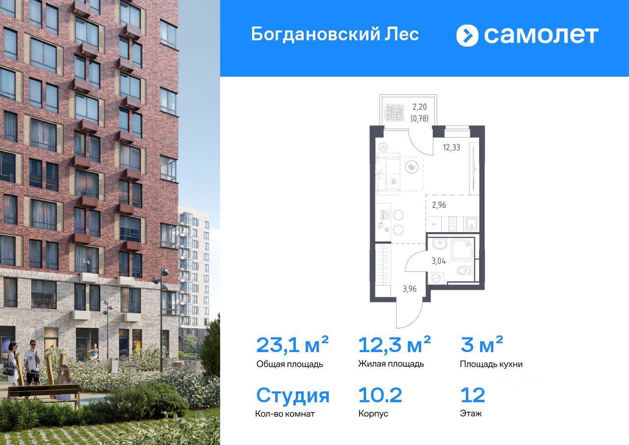 Строим кварталы для жизни с заботой о будущем. Предлагается квартира студия комфорт-класса 23,07 кв.м в корпусе 10.2 на 12 этаже, в ЖК "Богдановский Лес" Квартира с чистовой отделкой. Доступность дополнительных опций уточняйте у застройщика. Приобрести квартиру возможно по специальным акциям от застройщика, с текущими условиями акций можно ознакомиться в блоке "Акций". Цена динамическая и может отличаться, уточняйте актуальность у застройщика. "Богдановский Лес" находится в 17 км от МКАДа, но после открытия Южно-Лыткаринской автодороги расстояние уменьшится до 14 км. Рядом с домом — Коробовский лесопарк. Все дома в "Богдановском Лесу" не выше 12 этажей и располагаются в форме полукруга. Такое решение дарит ощущение камерности. На фасадах — кирпич природных оттенков: от белого и бордо до серого и коричневого. В квартале будет все для жизни: поликлиника и спорткомплекс с бассейном, детские сады и школы. За пределами приватных дворов появятся игровые и спортивные кластеры. "Богдановский Лес" — это: 1. До МКАДа — 20 минут на машине, а после открытия Южно-Лыткаринской автодороги — 12 минут 2. До станции метро "Домодедовская" — полчаса на машине 3. Аэропорт Домодедово — в 35 минутах на машине 4. Рядом — лес, реки Пахра и Людовна, Большой Людовинский пруд с зоной отдыха 5. Экомаршрут в Коробовском лесопарке рядом с домом, который соединит кварталы: "Пригород Лесное", "Горки Парк" и "Богдановский Лес" 6. Национальный конный парк "Русь" и парк-отель "Орловский" в 1020 минутах пешком 7. Аквапарк рядом с кварталом — в будущем на территории парк-отеля "Орловский" 8. Прогулочный маршрут через лесопарк 9. Монолитные дома комфортной высоты — от 11 до 12 этажей 10. 4 детских сада, 3 школы и поликлиника, торговый центр, спорткомплекс с бассейном 11. Воркаут-пространства и велопешеходный бульвар 12. Многоуровневые паркинги в пешей доступности 13. Планировки с постирочными комнатами, угловыми окнами с видами на лес