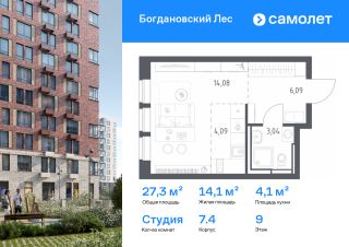 Строим кварталы для жизни с заботой о будущем. Предлагается квартира студия комфорт-класса 27,3 кв.м в корпусе 7.4 на 9 этаже, в ЖК "Богдановский Лес"