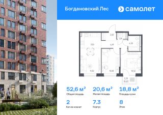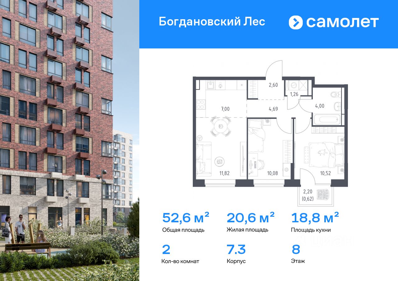 Строим кварталы для жизни с заботой о будущем. Предлагается 2-комнатная квартира комфорт-класса 52,59 кв.м в корпусе 7.3 на 8 этаже, в ЖК "Богдановский Лес"
