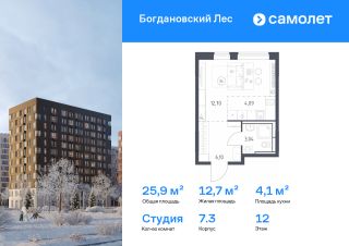 Строим кварталы для жизни с заботой о будущем. Предлагается квартира студия комфорт-класса 25,93 кв.м в корпусе 7.3 на 12 этаже, в ЖК "Богдановский Лес"