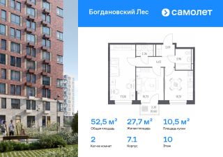 Строим кварталы для жизни с заботой о будущем. Предлагается 2-комнатная квартира комфорт-класса 52,53 кв.м в корпусе 7.1 на 10 этаже, в ЖК "Богдановский Лес"
