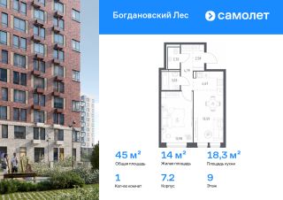 Строим кварталы для жизни с заботой о будущем. Предлагается 1-комнатная квартира комфорт-класса 44,96 кв.м в корпусе 7.2 на 9 этаже, в ЖК "Богдановский Лес"