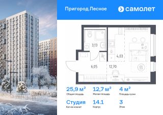 Строим кварталы для жизни с заботой о будущем. Предлагается квартира студия комфорт-класса 25,91 кв.м в корпусе 14.1 на 3 этаже, в ЖК "Пригород Лесное"