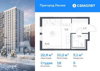 Строим кварталы для жизни с заботой о будущем. Предлагается квартира студия комфорт-класса 22,81 кв.м в корпусе 18 на 5 этаже, в ЖК "Пригород Лесное"