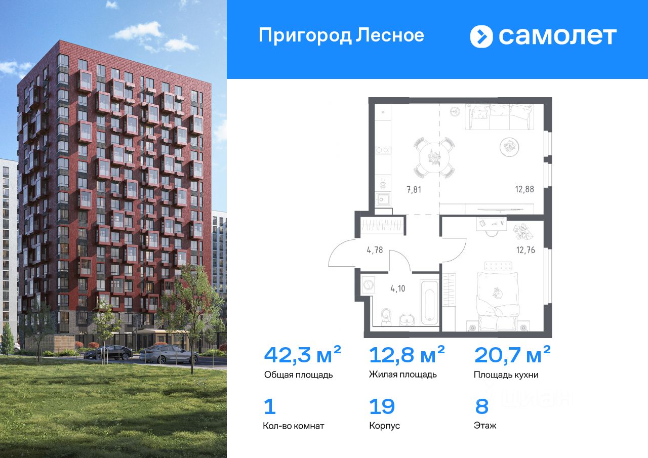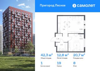 Строим кварталы для жизни с заботой о будущем. Предлагается 1-комнатная квартира комфорт-класса 42,33 кв.м в корпусе 19 на 8 этаже, в ЖК "Пригород Лесное"