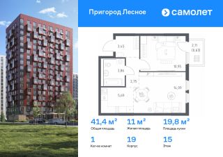 Строим кварталы для жизни с заботой о будущем. Предлагается 1-комнатная квартира комфорт-класса 41,42 кв.м в корпусе 19 на 15 этаже, в ЖК "Пригород Лесное"