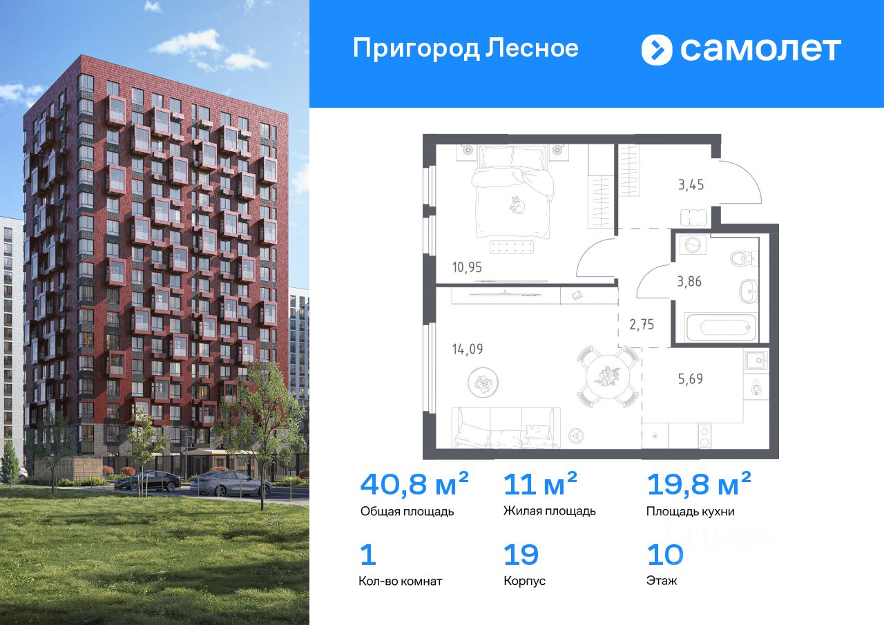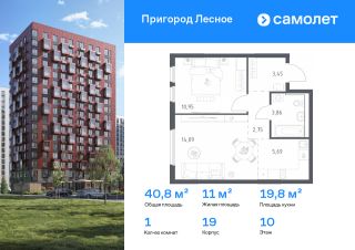 Строим кварталы для жизни с заботой о будущем. Предлагается 1-комнатная квартира комфорт-класса 40,79 кв.м в корпусе 19 на 10 этаже, в ЖК "Пригород Лесное"