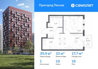 Строим кварталы для жизни с заботой о будущем. Предлагается 1-комнатная квартира комфорт-класса 35,89 кв.м в корпусе 19 на 16 этаже, в ЖК "Пригород Лесное"