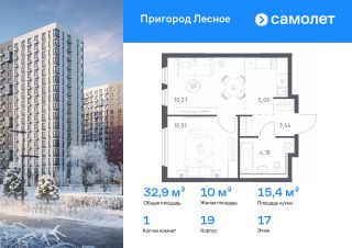 Строим кварталы для жизни с заботой о будущем. Предлагается 1-комнатная квартира комфорт-класса 32,91 кв.м в корпусе 19 на 17 этаже, в ЖК "Пригород Лесное"