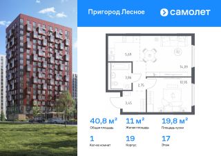 Строим кварталы для жизни с заботой о будущем. Предлагается 1-комнатная квартира комфорт-класса 40,79 кв.м в корпусе 19 на 17 этаже, в ЖК "Пригород Лесное"