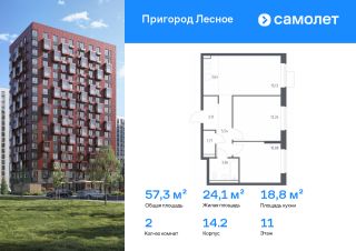 Строим кварталы для жизни с заботой о будущем. Предлагается 2-комнатная квартира комфорт-класса 57,27 кв.м в корпусе 14.2 на 11 этаже, в ЖК "Пригород Лесное"