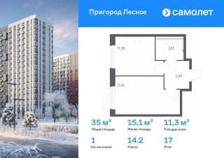 Строим кварталы для жизни с заботой о будущем. Предлагается 1-комнатная квартира комфорт-класса 34,98 кв.м в корпусе 14.2 на 17 этаже, в ЖК "Пригород Лесное"