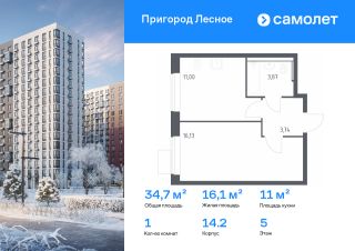 Строим кварталы для жизни с заботой о будущем. Предлагается 1-комнатная квартира комфорт-класса 34,74 кв.м в корпусе 14.2 на 5 этаже, в ЖК "Пригород Лесное"
