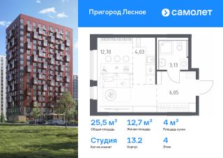 Строим кварталы для жизни с заботой о будущем. Предлагается квартира студия комфорт-класса 25,5 кв.м в корпусе 13.2 на 4 этаже, в ЖК "Пригород Лесное"