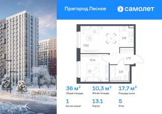 Строим кварталы для жизни с заботой о будущем. Предлагается 1-комнатная квартира комфорт-класса 36 кв.м в корпусе 13.1 на 5 этаже, в ЖК "Пригород Лесное"