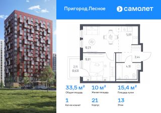 Строим кварталы для жизни с заботой о будущем. Предлагается 1-комнатная квартира комфорт-класса 33,54 кв.м в корпусе 21 на 13 этаже, в ЖК "Пригород Лесное"