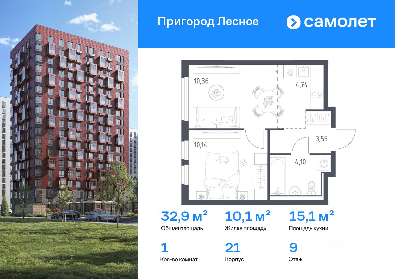 Строим кварталы для жизни с заботой о будущем. Предлагается 1-комнатная квартира комфорт-класса 32,89 кв.м в корпусе 21 на 9 этаже, в ЖК "Пригород Лесное"