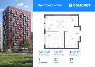 Строим кварталы для жизни с заботой о будущем. Предлагается 1-комнатная квартира комфорт-класса 32,76 кв.м в корпусе 21 на 17 этаже, в ЖК "Пригород Лесное"