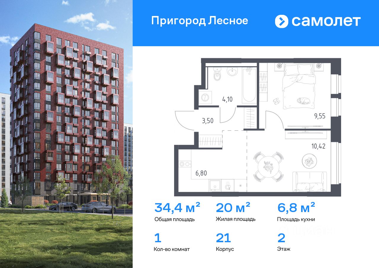 Строим кварталы для жизни с заботой о будущем. Предлагается 1-комнатная квартира комфорт-класса 34,37 кв.м в корпусе 21 на 2 этаже, в ЖК "Пригород Лесное"