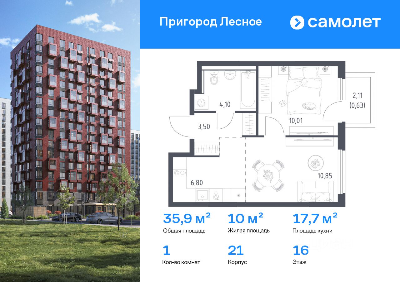 Строим кварталы для жизни с заботой о будущем. Предлагается 1-комнатная квартира комфорт-класса 35,89 кв.м в корпусе 21 на 16 этаже, в ЖК "Пригород Лесное"