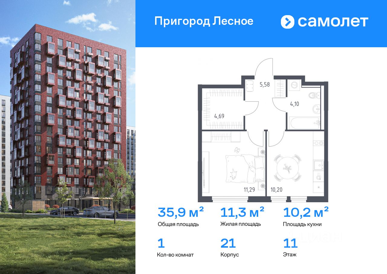 Строим кварталы для жизни с заботой о будущем. Предлагается 1-комнатная квартира комфорт-класса 35,86 кв.м в корпусе 21 на 11 этаже, в ЖК "Пригород Лесное"