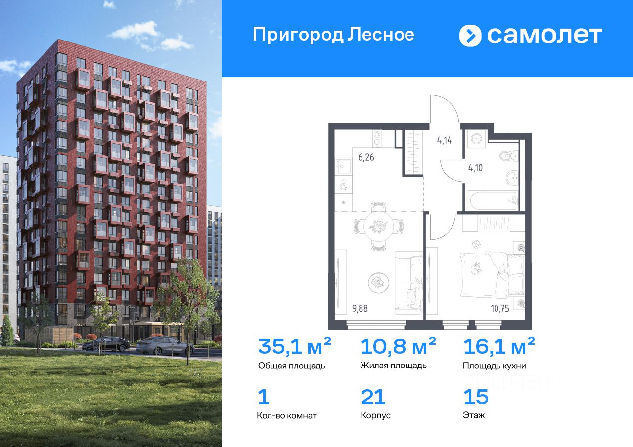 Строим кварталы для жизни с заботой о будущем. Предлагается 1-комнатная квартира комфорт-класса 35,13 кв.м в корпусе 21 на 15 этаже, в ЖК "Пригород Лесное"