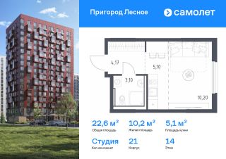 Строим кварталы для жизни с заботой о будущем. Предлагается квартира студия комфорт-класса 22,57 кв.м в корпусе 21 на 14 этаже, в ЖК "Пригород Лесное"