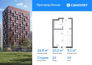 Строим кварталы для жизни с заботой о будущем. Предлагается квартира студия комфорт-класса 22,81 кв.м в корпусе 21 на 14 этаже, в ЖК "Пригород Лесное"