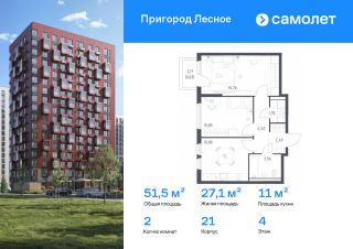 Строим кварталы для жизни с заботой о будущем. Предлагается 2-комнатная квартира комфорт-класса 51,45 кв.м в корпусе 21 на 4 этаже, в ЖК "Пригород Лесное"